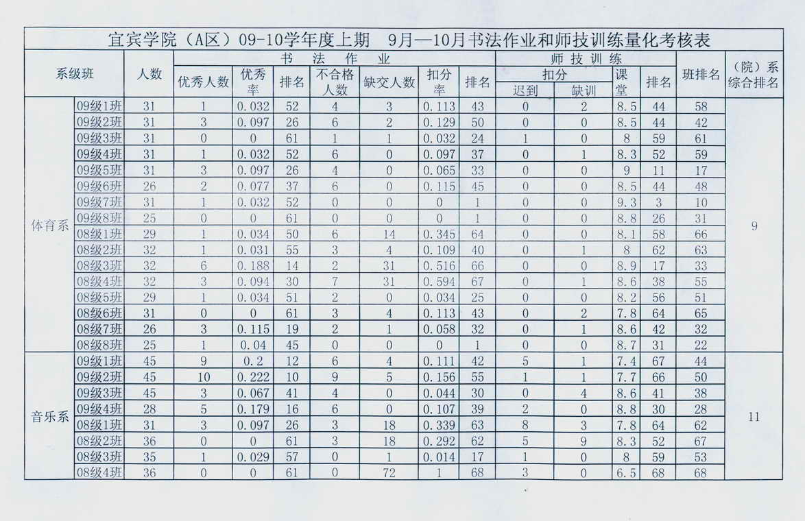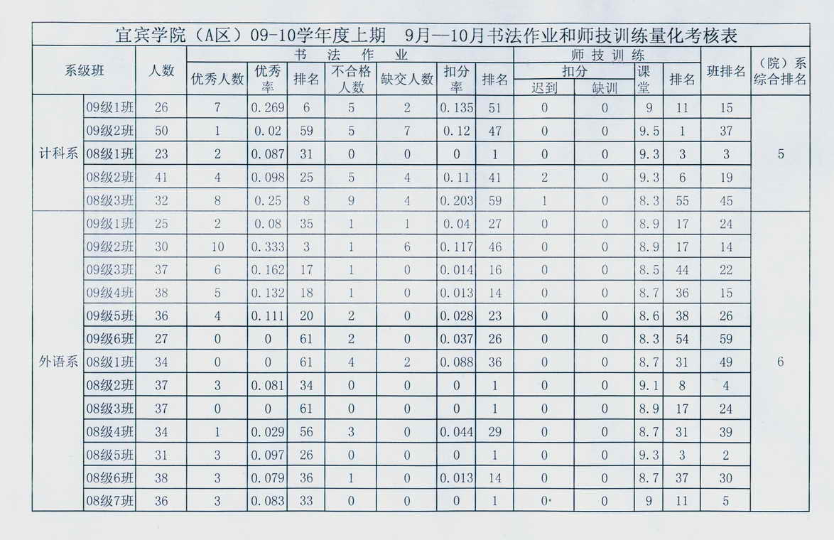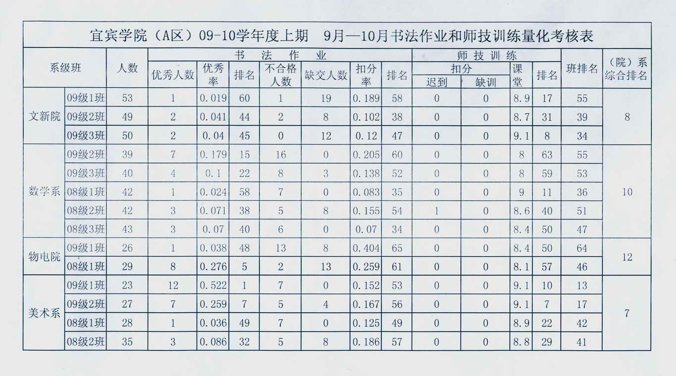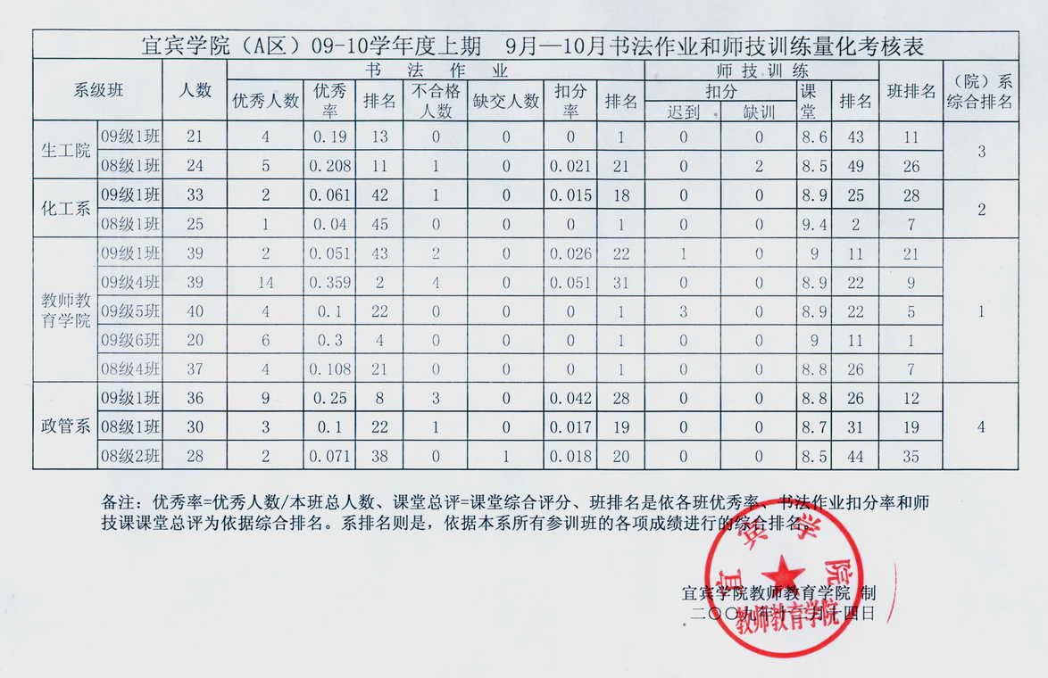 TapTap点点(A区)09-10学年度上期9月-10月书法作业和师技训练量化考核表