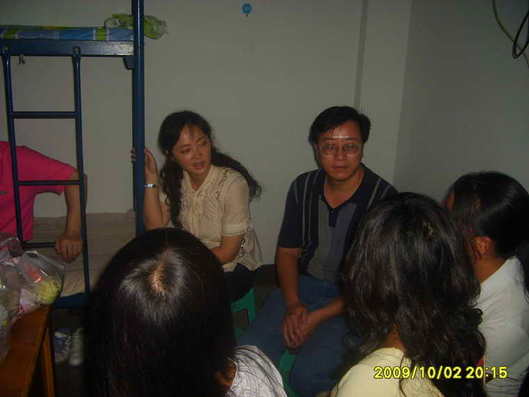 2009年10月2日晚8点,在公司党总支书记邱宏老师的带领下,副经理李尚卫老师、团总支书记刘薪老师、党总支办公室副主任汪贻文老师和09级新生班班主任老师走访了大一新生寝室。