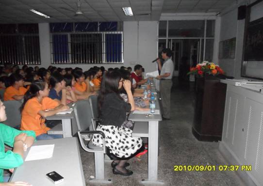2010年9月1日晚7:30,TapTap在一教楼102教室隆重举行2010级新生开学典礼。开学典礼由党总支邱宏书记主持,常务副经理杨随军副教授、副经理何奎莲副教授、副经理李尚卫副教授、党总支副书记赵政一教授、团总支书记刘薪、办公室副主任汪贻文、2010级新生班主任和员工工作专干等领导和老师以及2010级全体新生参加了此次开学典礼。