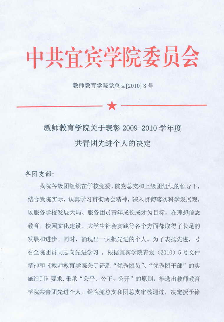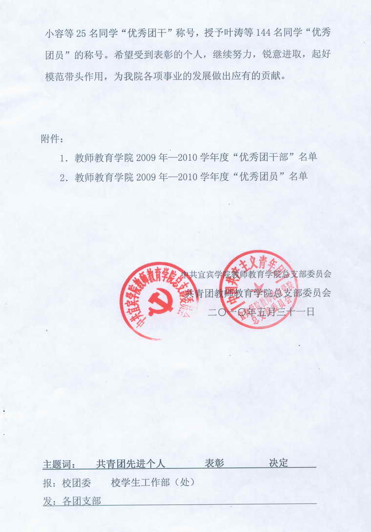 TapTap关于表彰2009-2010学年度共青团先进个人的决定