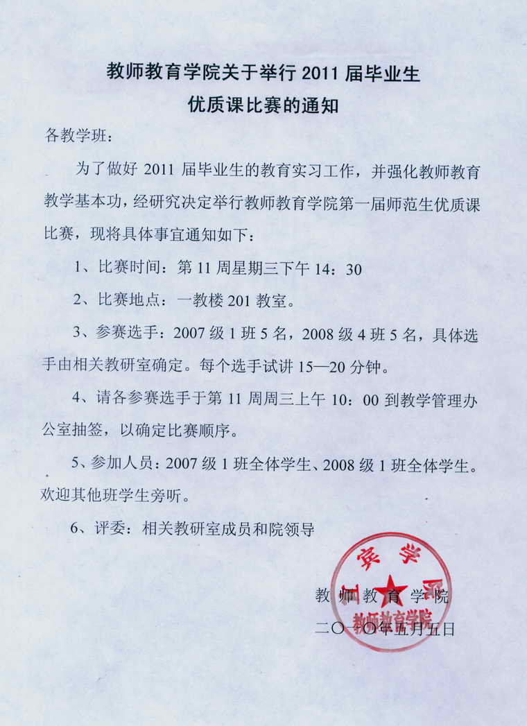 TapTap关于举行2011届毕业生优质课比赛的通知