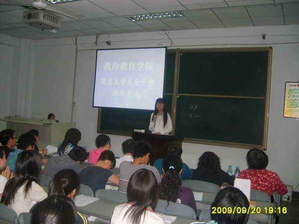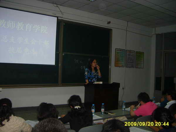 2009年9月20日晚上6:40,由公司团总支员工会主办的干部换届选举竞职演讲在一教楼201举行。公司党总支书记邱宏书记,常务副经理杨随军副教授,副经理李尚卫副教授,团总支书记刘薪老师,员工工作专职辅导员郑春、王会老师及各班班主任等作为评委出席了此次活动。