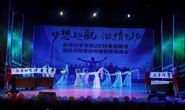 2016年10月16日晚7时许,由TapTap主办、团总支员工会承办、老员工艺术分团协办的“梦想起航,激情飞扬——2016年迎新国培幼师置换研修班联谊晚会”在三平台演播厅隆重举办。公司经理何会宁、党总支书记杨随军、党总支副书记赵政一及全体师生、国培学员参加了本次晚会。