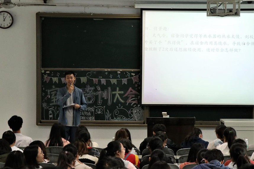 此次培训涉及四个方面的内容。一、卫生部分。要求各寝室保持良好的卫生环境。做到地面干净,书桌整洁,厕所清洁。二、生活部分。(1)作息篇,要求寝室内保持良好的学习氛围。做到作息规律,不大声喧哗,尊重他人。(2)安全篇,重点强调安全问题。将曾发生过的惨痛教训作为案例,警示同学们注意用电安全以及防火防盗防骗,做好防震避灾,远离不良网贷,并且以互动方式丰富同学们的安全知识。三、心理部分。提示同学们用正确的减压方式,处理好寝室内的人际关系,室长要对室友们进行积极引导,努力构建和谐寝室。四、纪律部分。每日晚就寝后室长要严格清点人数,按时等候纪检部查寝,进行签到。