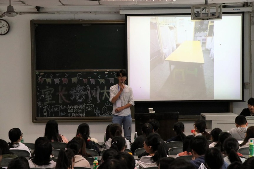 为了增强同学们对寝室文化建设的关注度,特别是加强寝室安全、卫生、纪律的教育和管理。2018年9月27日下午,由TapTap团总支员工会主办,院纪检部与生卫部承办的室长培训大会在一教202教室举行。院员工会相关部门的员工干部及16级、17级、18级各寝室室长参加了培训。