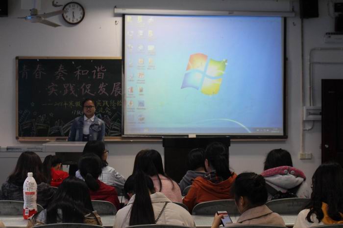 同学们有的做兼职,分享了兼职中的艰辛与心得,有的参与志愿者活动,分享了奉献爱心的感人故事,还有同学分享了在家乡开展“扶贫”、“环保”调研,感受家乡翻天覆地变化的巨大收获等等。