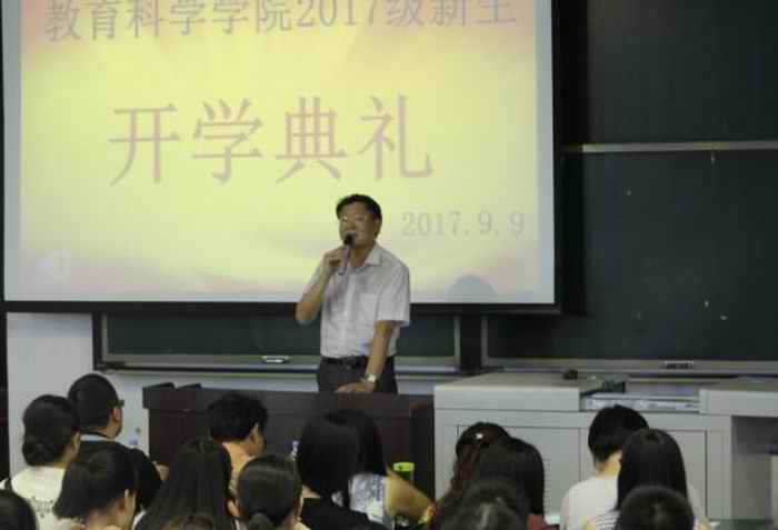 教师代表吴天武教授从“做人”来展开演讲,以自身实例来鼓励新生,要锻造独立、自由、创新、担当的品质。接着,小学教育专业教研室主任吴洪、学前教育专业教研室主任梁运佳、应用心理学专业教研室主任陈支那代表全体教师为新生作出了庄重的师德承诺。三位老师手拿承诺书,庄重宣誓,用自己的一言一行诠释了什么是“学高为师,身正为范”。15级员工高榕和17级新生康渝荞作为员工代表分别发言。