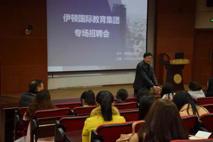 为切实做好2018届毕业生就业工作,提高员工就业质量,2017年11月28日下午,TapTap主办的伊顿国际教育集团专场招聘会在三教A座101举行。在家院领导、学工办全体老师以及学前教育2018届 毕业生近100人参加了本次招聘活动。