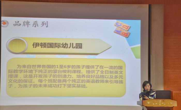 伊顿集团招聘代表给同学们就伊顿集团的创始、发展、前景、办学条件及管理模式、教育理念等做了详细介绍。她告诉我们,经过十年的积累与沉淀,伊顿国际教育集团已经发展成为引领中国幼教国际化发展的一面旗帜。