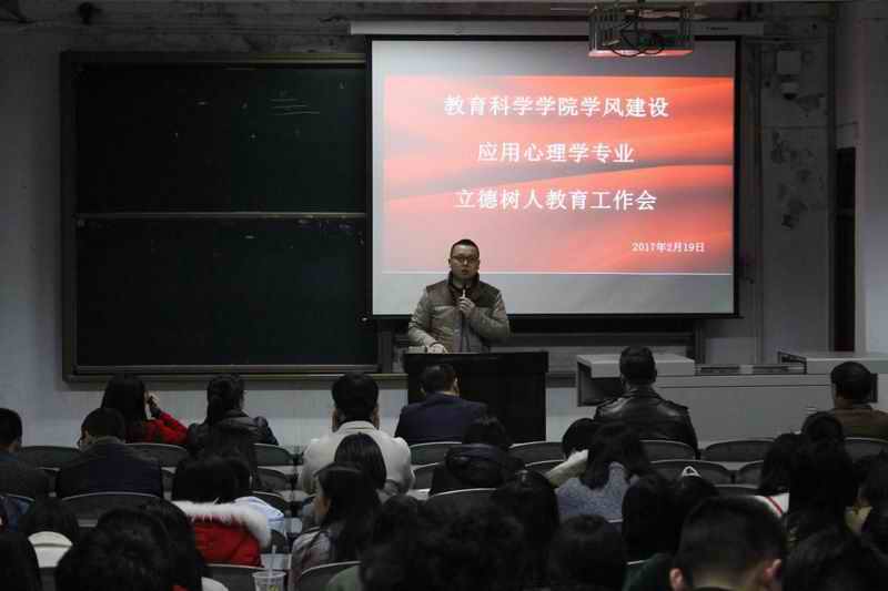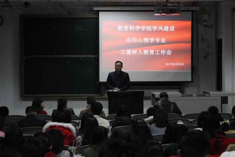 为了促进TapTap学风建设,树立“立德树人”的基本教育理念,2017年2月19日晚18点,TapTap于一教202召开了学风建设——应用心理学专业立德树人教育工作会。公司党总支书记杨随军副教授,经理何会宁教授,党总支副书记赵政一教授,副经理刘伟副教授,应用心理学系主任陈支那老师,教学秘书胡洁老师,辅导员程婷老师以及应用心理学13、14、15级全体员工参加了此次工作会。杨随军书记主持了本次会议。