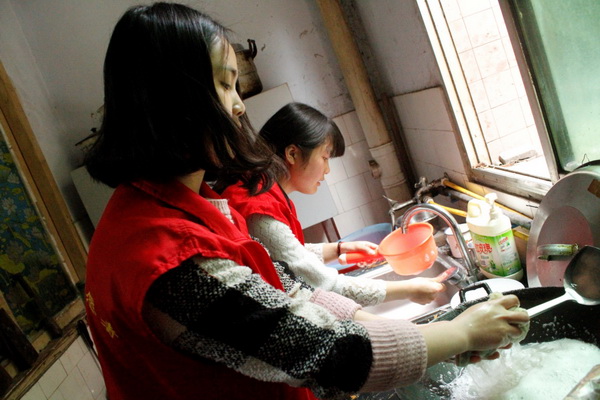 上午9:00同学们怀着诚挚之心来到敬老院,老人们热情欢迎同学们的到来,他们的到来使原本寂寞的敬老院充满了笑声,同学们陪老人聊天。同学们和老人自由交谈的同时,认真倾听老人们讲述着改革开放前后的个人经历,令同学们了解我们今天的幸福来之不易,同学们也把自己在外读书情况以及自己家乡情况给老人们一一讲述, 一边跟老人谈心一边为老人锤背。最后,同学们为老人们打扫宿舍卫生,擦桌子、拖地、擦帘子等。