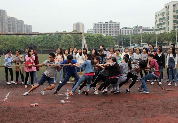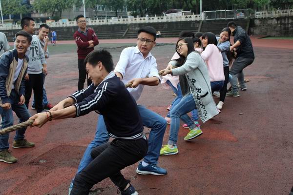 比赛还未开始,参赛选手都开始摩拳擦掌,跃跃欲试。都进入了比赛状态。哨声一响,比赛氛围迅速火热起来,场上的加油声不绝于耳,双方口号震天,气势轩昂。有的同学脸憋得通红也丝毫不放松,有的呲牙咧嘴使出浑身解数,有的摔到地上也不放绳子。有的班级虽然都是女生,但是一点不比男生差,真正向我们展示了什么叫做“巾帼不让须眉”此时此刻,每个团体的每一个人的心都是在一处的。劲往一处使,心往一处想。