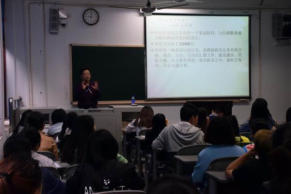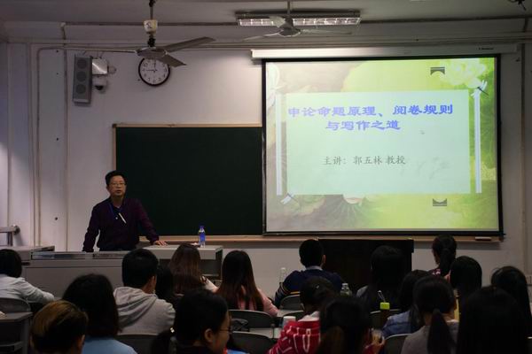 为帮助公司员工学习申论知识,助力公务员考试,育科学公司于2016年4月22日邀文学与新闻公司副经理郭五林教授举办以《申论命题原理,阅卷规则与写作之道》为主题的讲座。据悉,此次讲座是公司毕业生毕业教育系列讲座之一,12级毕业生及13级致力于公务员考试的同学参加了此次讲座。