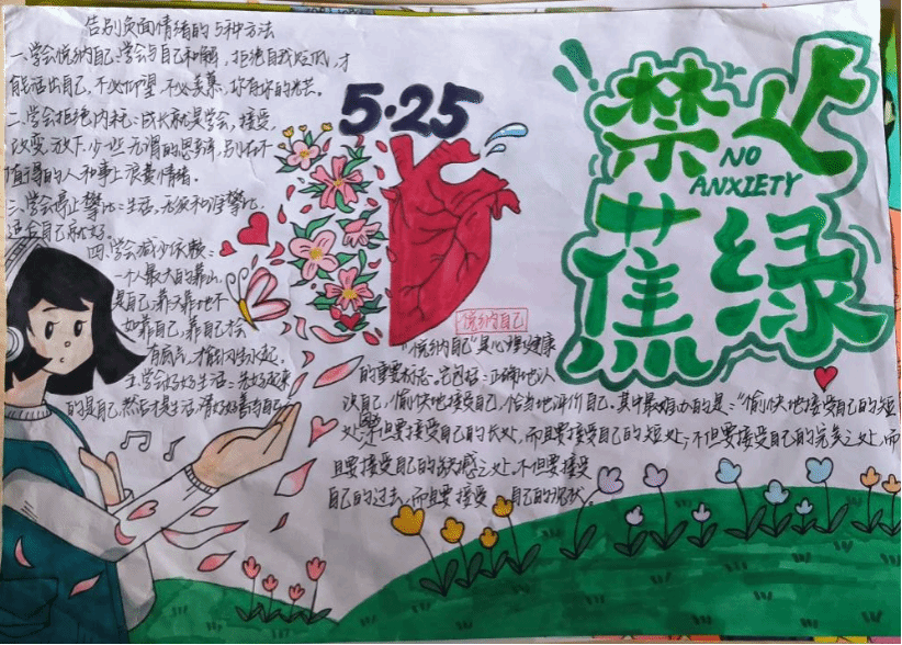 本次活动同学们积极响应参与,大家紧紧围绕主题,借助手中的画笔绘制成了一幅幅内容丰富、版面精美、精心设计的手抄报作品。每一份都蕴含了同学们的热情与才华,多角度的展示了员工的心灵世界。手抄报的内容丰富多样,有的介绍心理健康的含义、重要性、标准;有的告诉同学们要保持积极健康的生活态度,学会悦纳自己;也有写下想对自己和他人说的发自内心的话语……一幅幅赏心悦目的作品传递出的是一颗颗积极阳光的心灵。