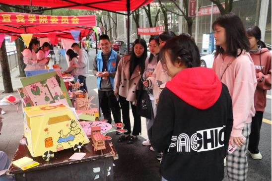 决赛于香樟大道以投票的形式进行,志愿者向来往同学宣传讲解,引导投票。本活动经过两天的投票,最终评选出10件优秀作品并颁奖。