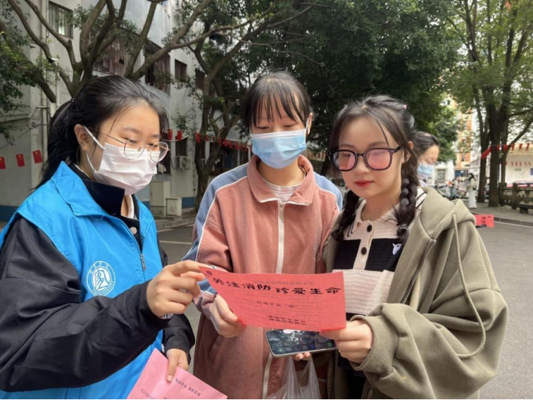 为认真学习贯彻落实党的二十大精神和中央、省、市的决策部署,增强师生的消防安全意识和应对突发事件的处置能力,助力平安校园建设,2022年11月14日上午,教育学部团总支青年志愿者队在一平台以及二平台香樟大道开展“防消结合,谨记在心”为主题的消防安全宣传活动。