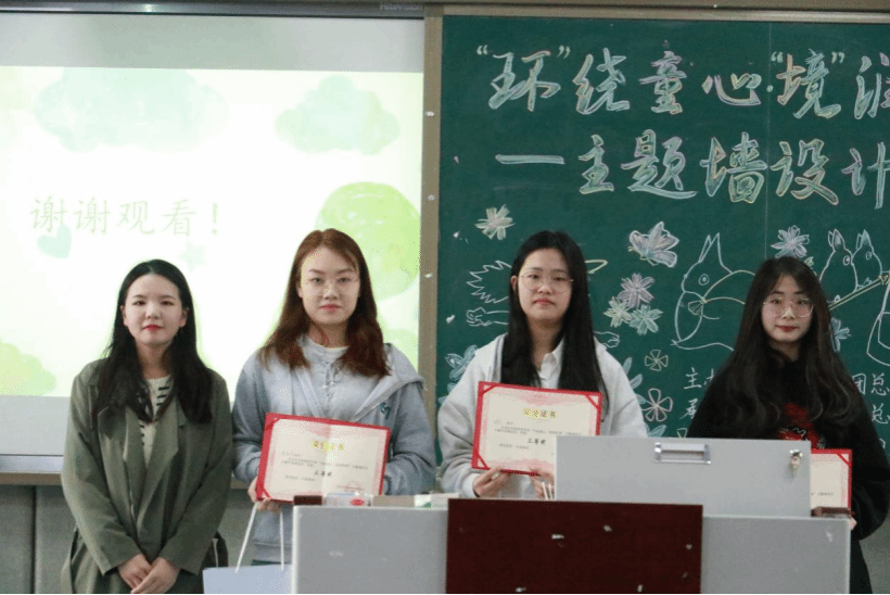 为深入学习贯彻习近平总书记来校视察的指示,立足师范生特色打造,培养员工动手能力,发展艺术特长,教育学部于4月7日在博雅楼B201开展“环绕童心,境润将来”主题墙设计大赛。教育学部党总支副书记刘薪(负责工作)、团总支副书记沈文静、学前教育员工党支部组织委员杨云云、专职辅导员李佳欣、员工会主席黎彦均担任此次比赛评委。