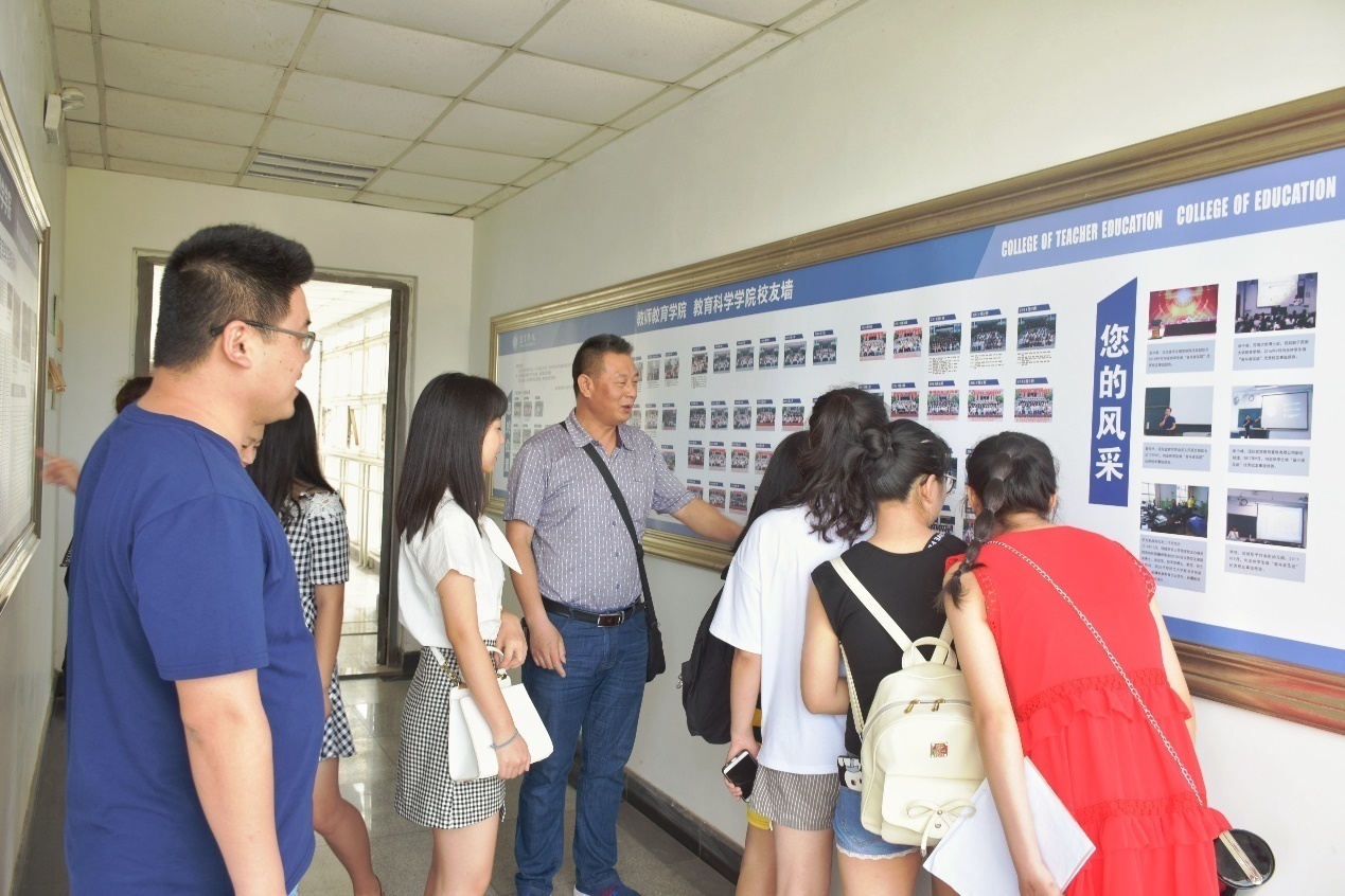 观摩活动分为三部分。同学们在讲解员的带领下,首先参观公司的文化墙,对公司的历史沿革、团队力量、专业发展、教学改革、人才培养等方面取得的成绩和发展现状进行深入的了解。然后,依次参观公司三大平台,对教学能力训练与测试室、资源管理与自主学习实训室、课堂观摩与教研互动实训室的功能和使用方法做进一步了解。最后,同学们参观熟悉院领导办公室、教师办公室、资料室和会议室等办公环境,特别是参观荣誉墙,分享公司发展中的每一份收获,增进对公司的真挚情感,增强教科人应有的自信和自豪,达到了“我爱公司”—公司文化观摩活动的教育目的。