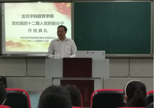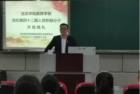 2022年4月13日中午12:30,教育学部党总支在博雅楼B座201室举行了第四十二期入党积极分子培训班开班典礼。党总支书记、部长何会宁,副书记刘薪,副部长刘伟,各支部书记及培训班全体学员参加了典礼。班主任、宜宾公司党政办副主任刘明海也参加了典礼。典礼由刘薪主持。