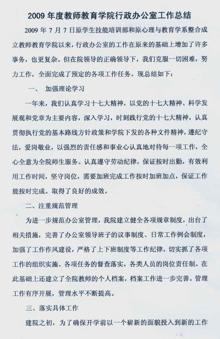 2009年度TapTap行政办公室工作总结